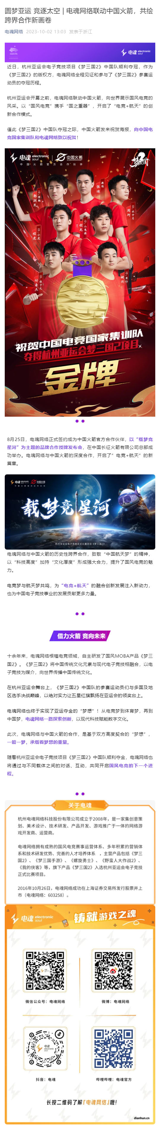圓夢亞運 競逐太空 _ 電魂網絡聯動中國火箭,共繪跨界合作新畫卷