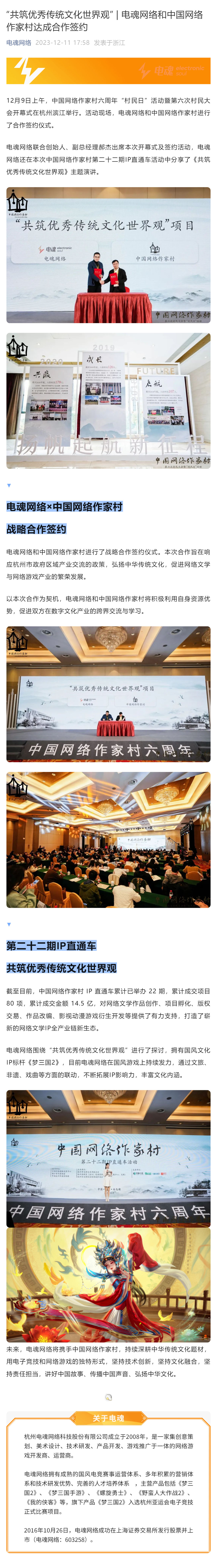 “共筑優秀傳統文化世界觀” _ 電魂網絡和中國網絡作家村_達成合作簽約