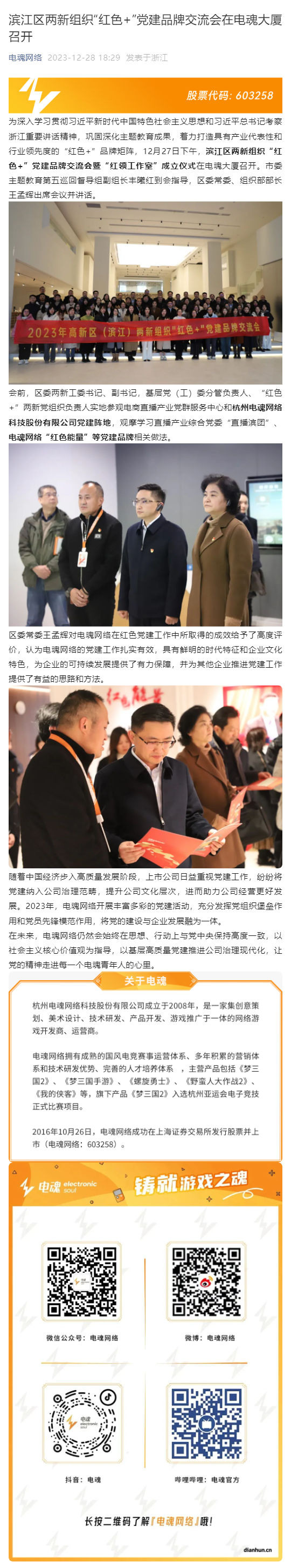 濱江區(qū)兩新組織“紅色+”黨建品牌交流會在電魂大廈召開