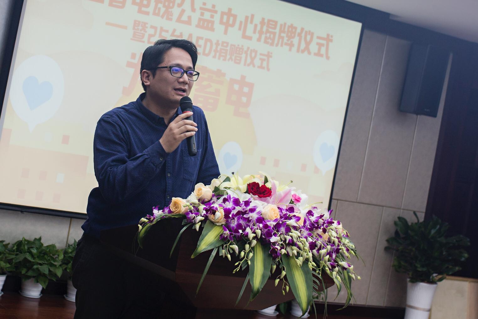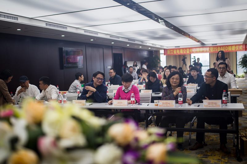 浙江省電魂公益中心成立后落地的第一個項目攜手心喚醒,現場捐贈了25臺AED(自動體外除顫器),快公益負責人王錦主任出席并發表了講話。之后我們將培訓500名志愿者能夠準確使用該”救命神器“。并將通過志愿者向群眾宣傳普及心肺復蘇急救知識,希望美麗的杭州能多一份安全,多一份保障。
