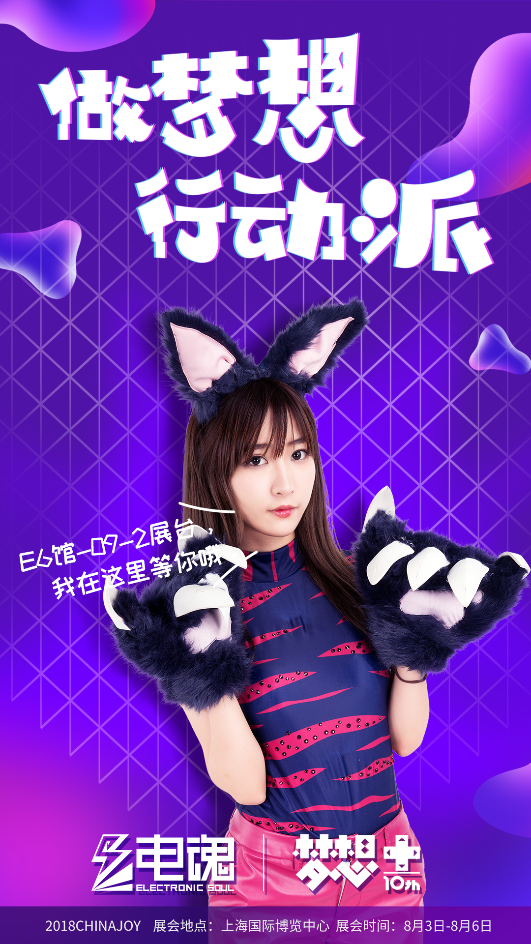 今年電魂網絡展臺的showgirl造型是手游《野蠻人大作戰》中,貓女摩摩可的造型改版。俏皮的貓耳和萌萌的貓爪,看看這些或淘氣可愛、或清純可人、或高冷艷麗的電魂看板娘們,是不是連空氣都變得甜蜜了呢?電魂網絡E6館-09-2展臺等你到來PICK~