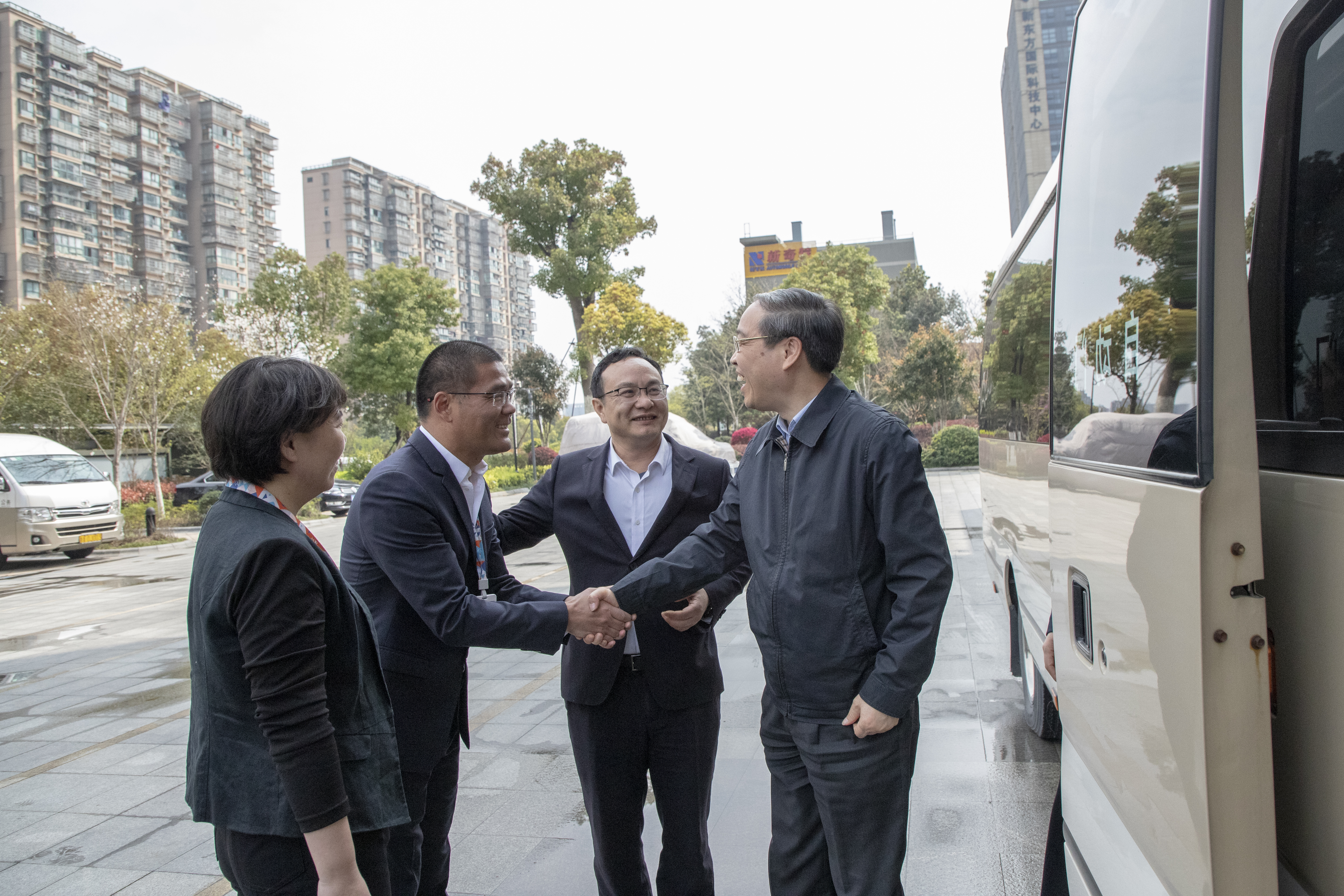 項(xiàng)目中心參觀完畢后,潘主席一行在17樓對基地建設(shè)情況進(jìn)行眺望,胡董事長具體介紹了基地二期建設(shè)規(guī)劃布局,并告訴潘主席“基地二期將于今年8月完成主體建設(shè)”。
