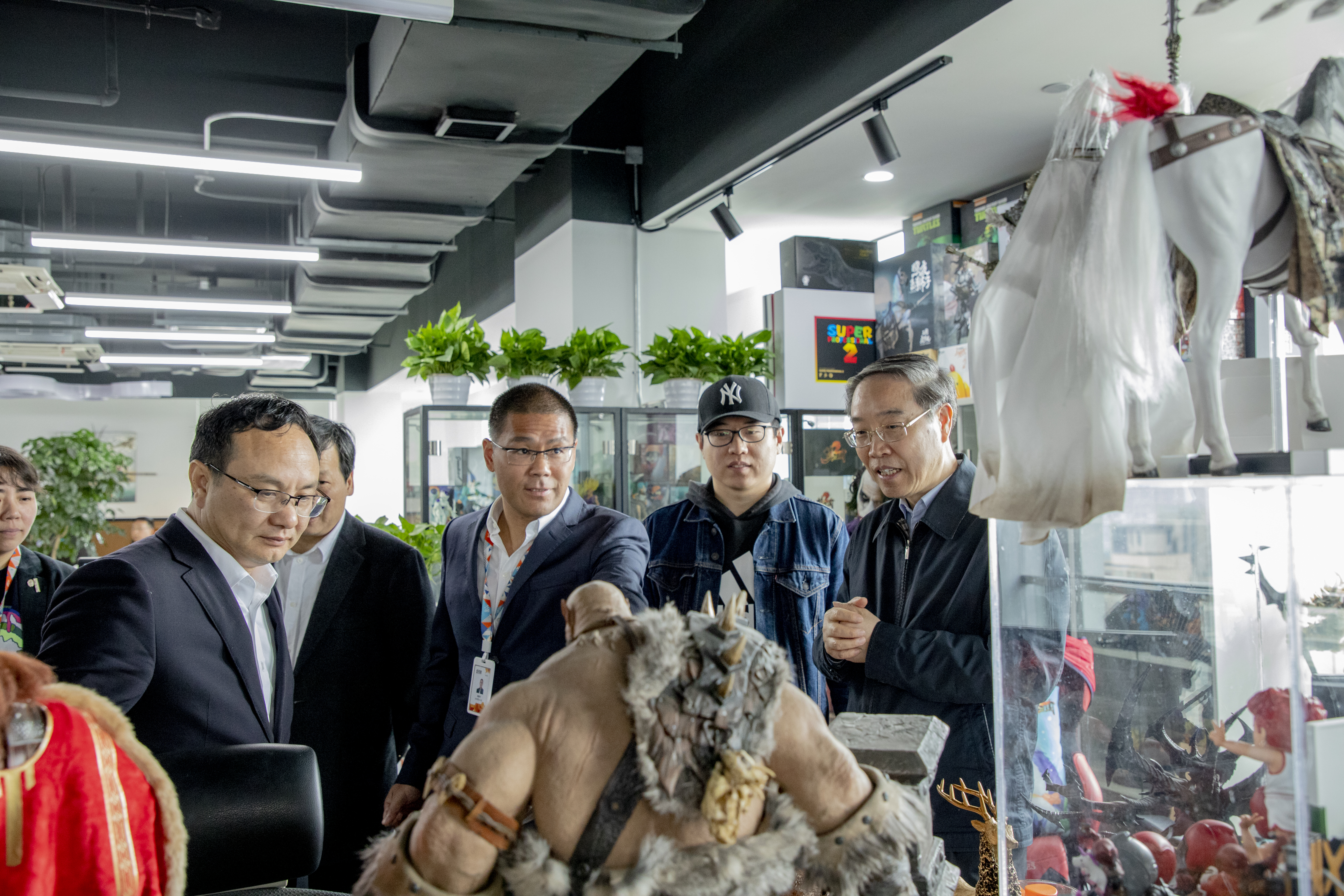 隨后,胡董事長帶領(lǐng)潘主席一行來到17樓夢三國項(xiàng)目中心,項(xiàng)目負(fù)責(zé)同事就夢三國端游的核心玩法,創(chuàng)意來源、競技形式及游戲涉及的具體游戲人物設(shè)計、程序研發(fā),游戲內(nèi)美術(shù)的制作流程,該游戲取得的榮譽(yù)等進(jìn)行了仔細(xì)講解。胡董事長和潘主席就游戲行業(yè)與電影行業(yè)的關(guān)聯(lián)性及三國文化如何通過游戲進(jìn)行傳播等問題進(jìn)行深入探討。