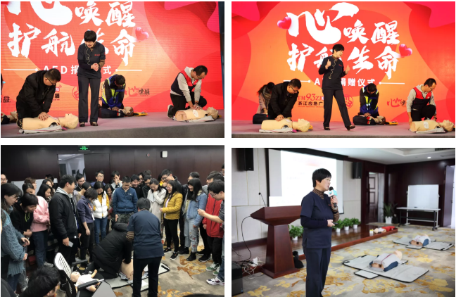 儀式當(dāng)天,邵逸夫醫(yī)院技能培訓(xùn)中心張悅怡主任還在儀式現(xiàn)場(chǎng)及下午的講座中分別向與會(huì)人員和志愿者們介紹了急救知識(shí)以及AED的使用方式,通過(guò)講演結(jié)合的形式針對(duì)搶救的流程、高質(zhì)量心肺復(fù)蘇的要點(diǎn)以及常見(jiàn)的急救應(yīng)對(duì)措施和關(guān)鍵技能進(jìn)行了重點(diǎn)普及, 幫助大家掌握基礎(chǔ)心肺復(fù)蘇技能,提高急救能力。