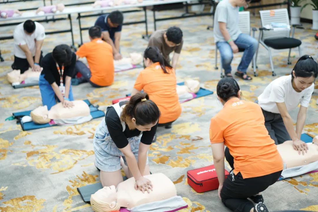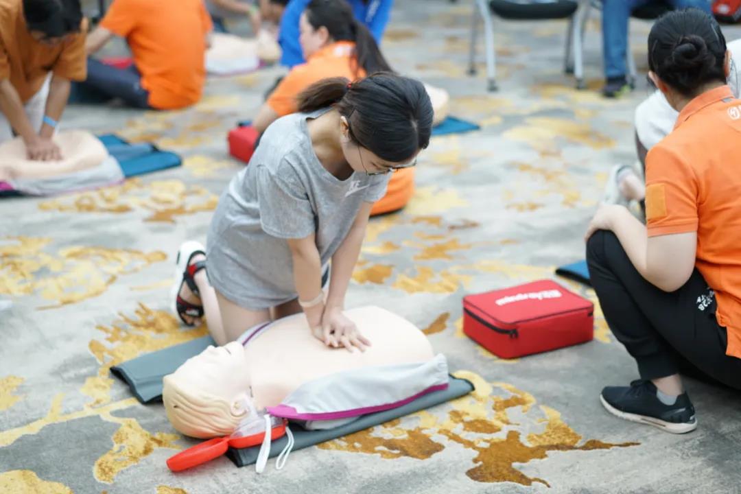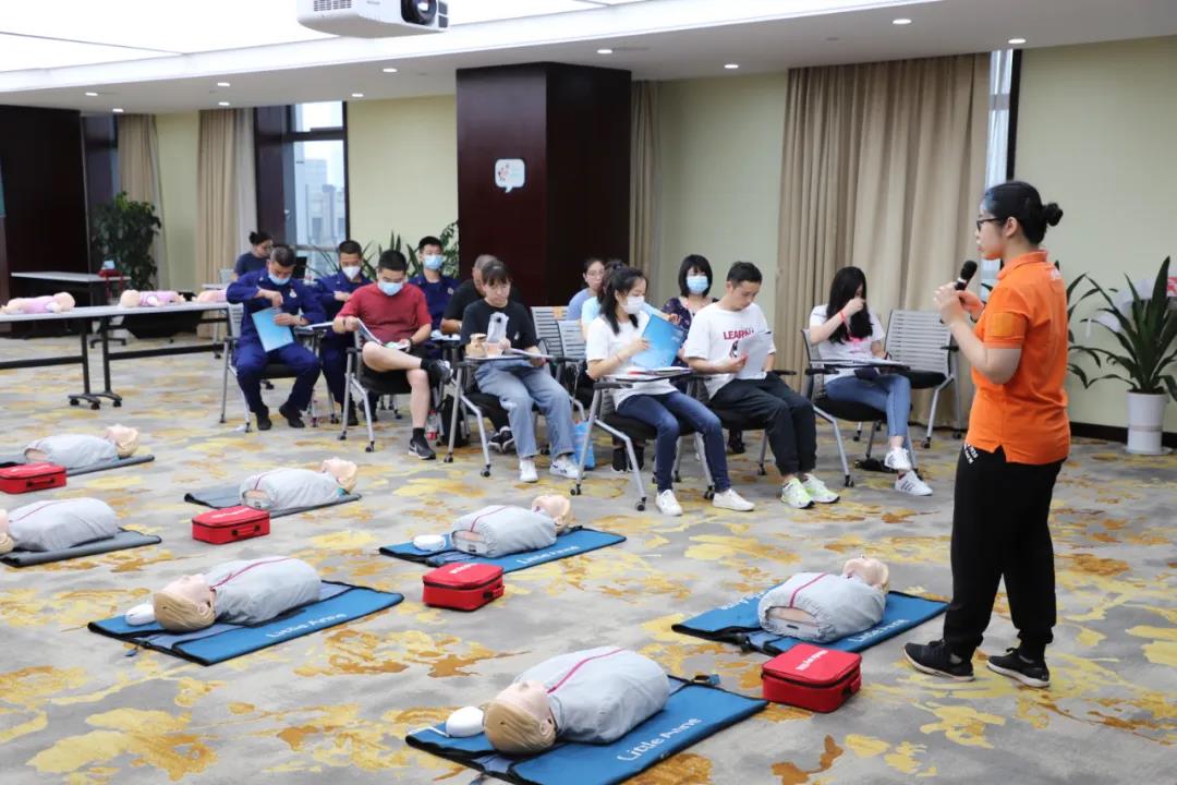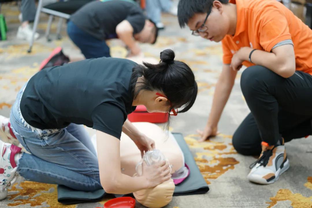 課程中,老師為大家講解了急救的正確步驟,并從按壓手勢、姿勢、節(jié)奏等幾個方面對現(xiàn)場的學(xué)員進(jìn)行了CPR的實踐指導(dǎo)。
