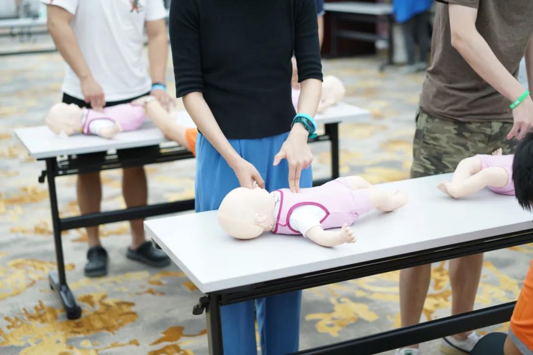 培訓(xùn)現(xiàn)場還為學(xué)員們準(zhǔn)備了嬰兒的急救模型,以便大家可以直觀的感受成年人CPR與嬰幼兒CPR的區(qū)別。