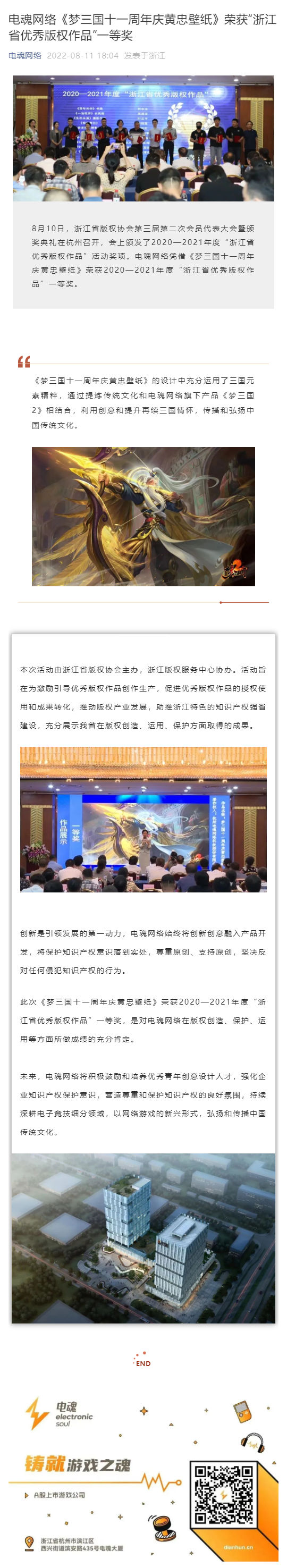 電魂網絡《夢三國十一周年慶黃忠壁紙》榮獲“浙江省優秀版權作品”一等獎