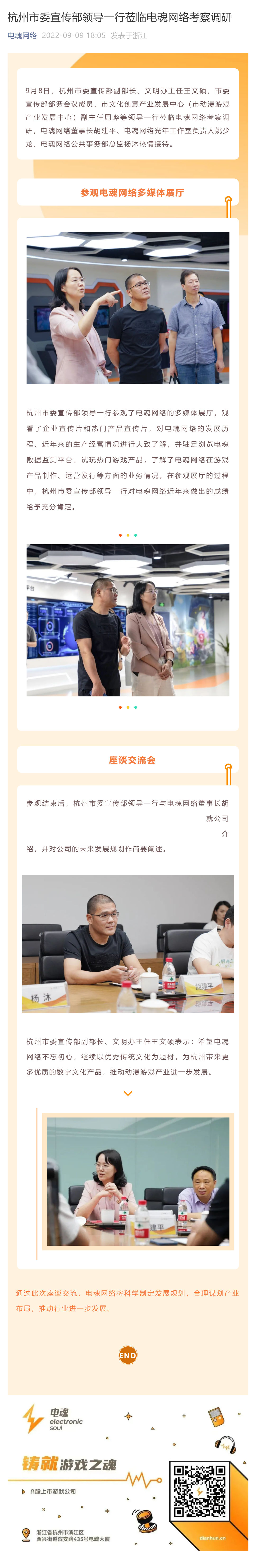 杭州市委宣傳部領導一行蒞臨電魂網絡考察調研